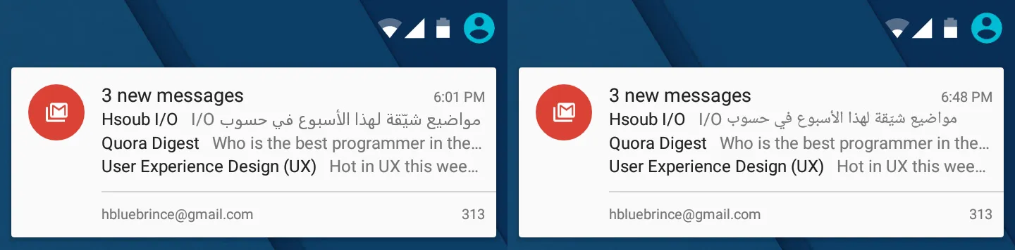 After my extensive use of the font, I started to notice the difference between Segoe UI and Droid Naskh (or Noto Naskh now), the main Arabic font in my Android phone, in terms of both legibility and appearance.